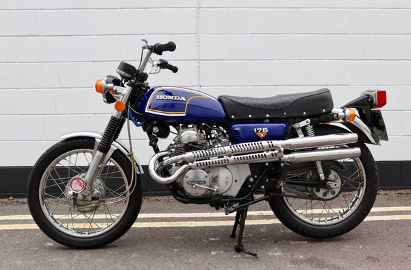 1972 Honda CL175 Scrambler. In een zeer goede bruikbare staat had de afgelopen 3 jaar veel geld aan het besteed door de vorige eigenaar. Wordt geleverd met veel bonnen die worden bevestigd aan gekochte onderdelen en werkzaam werk. Sommige bits omvatten nieuwe koolhydraten en geluiddempers. Voor het eerst geregistreerd in het VK in 2016 met iets meer dan 4000 mijl op de klok. Belasting- en MOT -vrijgesteld, klaar om te rijden!