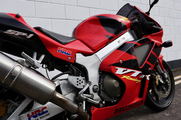 2000 Honda VTR 1000 SP1. In zeer goede oorspronkelijke staat behouden nog steeds zijn originele geluiddempers met slechts 11596 mijl op de klok. Wordt geleverd met een particuliere registratieplaat (S21 VTR). Services worden bijgewerkt en hebben een nieuw motgebied te koop.