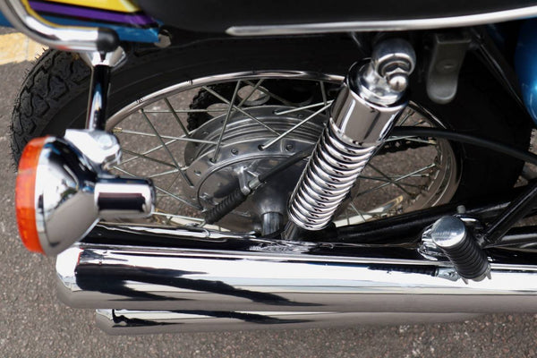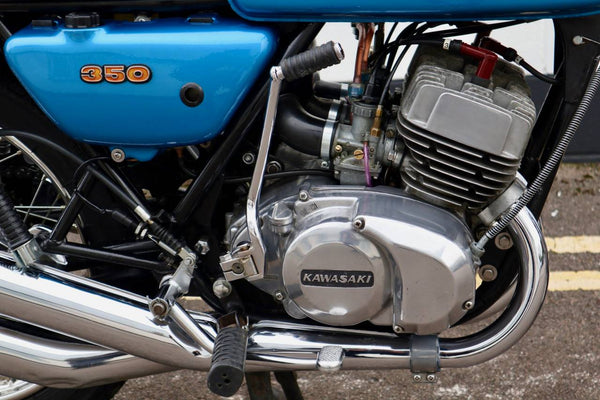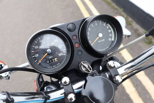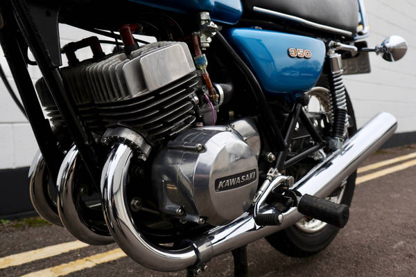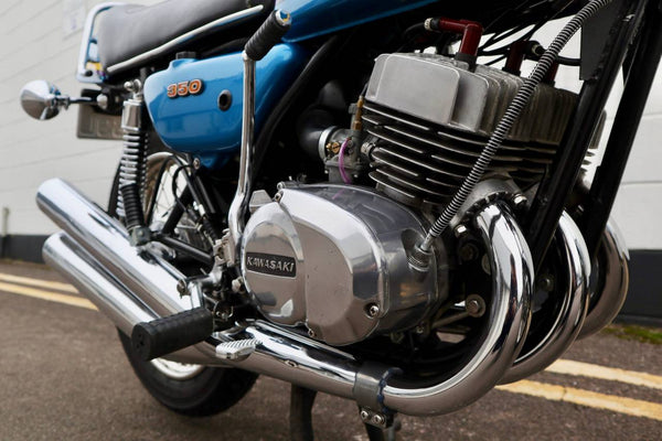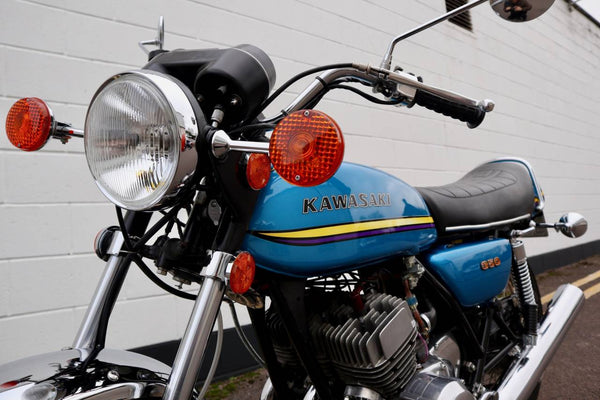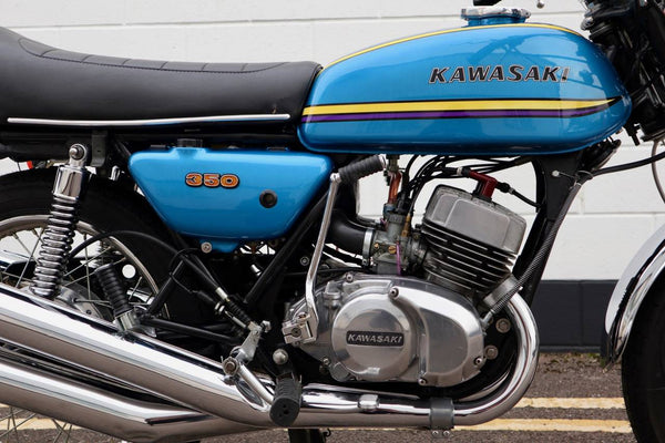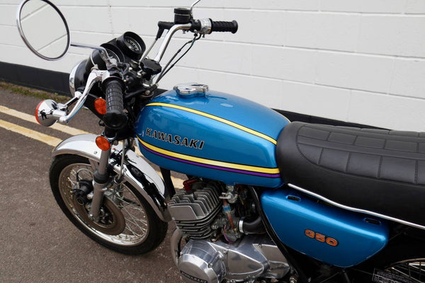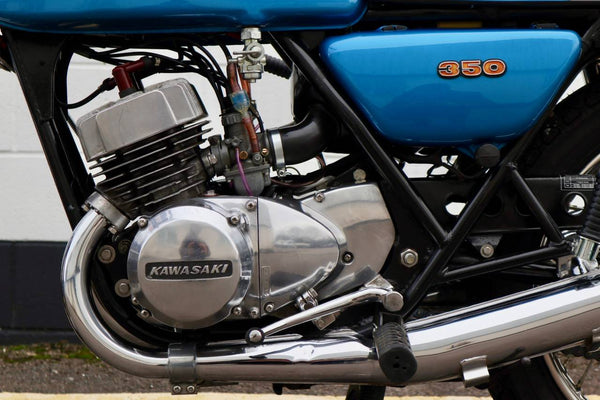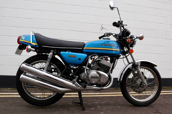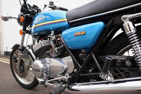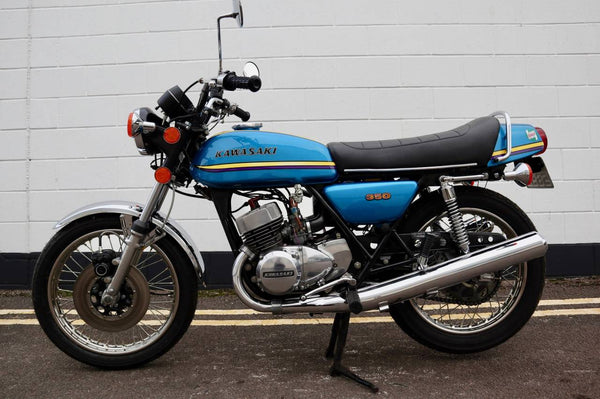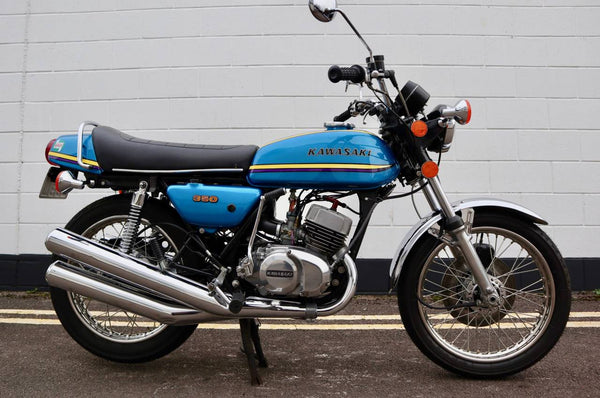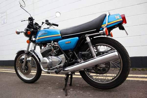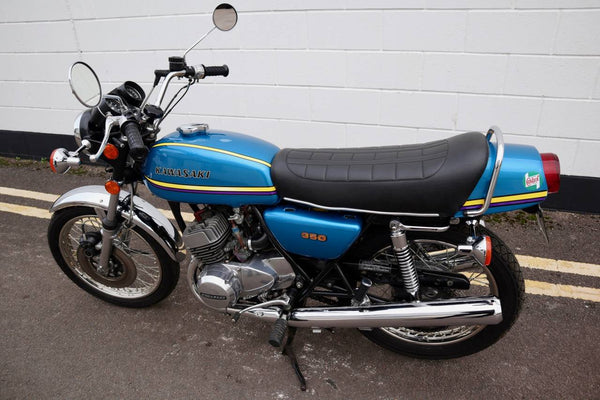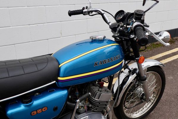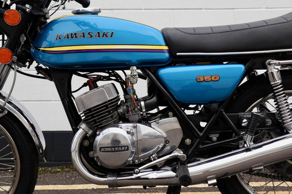 1973 Kawasaki S2A 350cc. In zeer goede staat lijkt het na import sympathiek te zijn gerestaureerd. Geregistreerd in het VK in 2020. Alle onderdelen zien er origineel uit en de nummers zijn. (Frame: S2T 10355 Motor: S2E 26406). Het tonen van slechts 5188 mijl op de klok die misschien correct is maar niet gecertificeerd. VK geregistreerd als een historisch voertuig. Start en loopt erg goed zoals te zien in de video. Een goed voorbeeld!