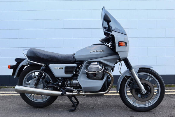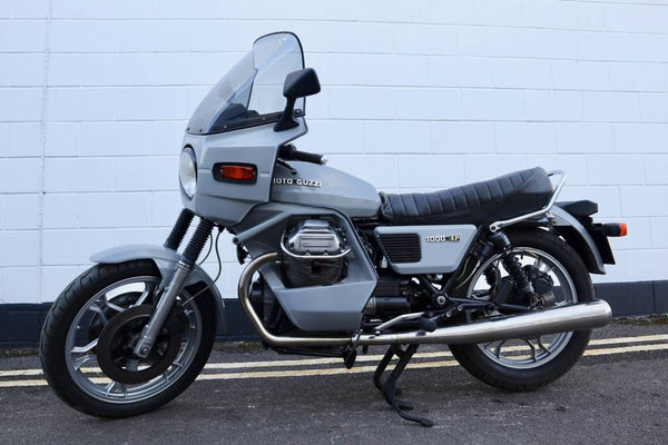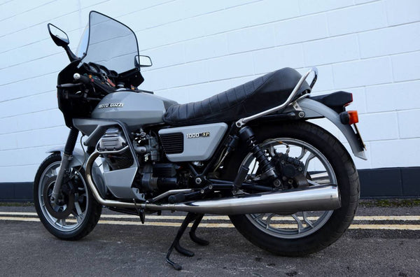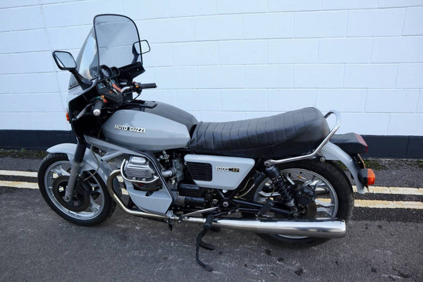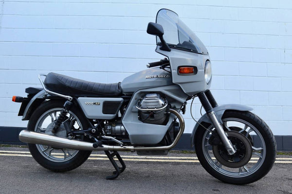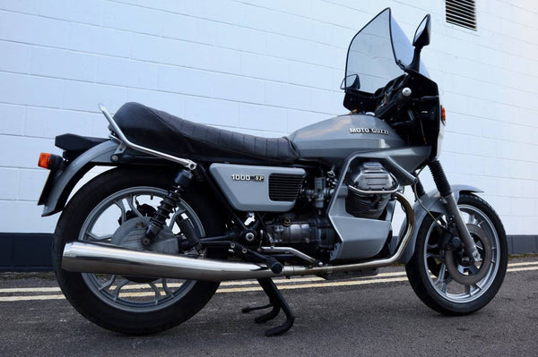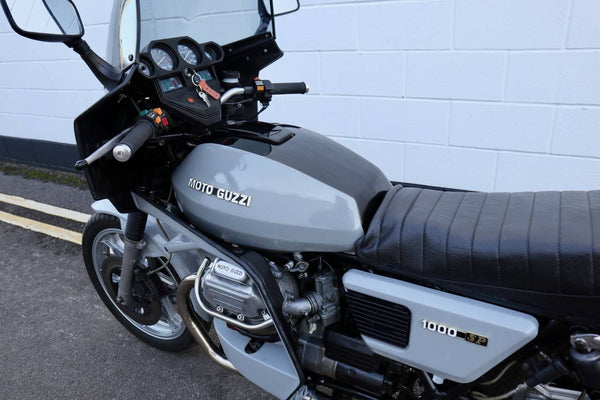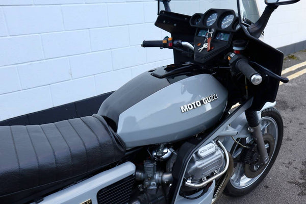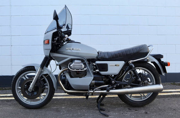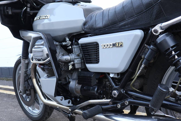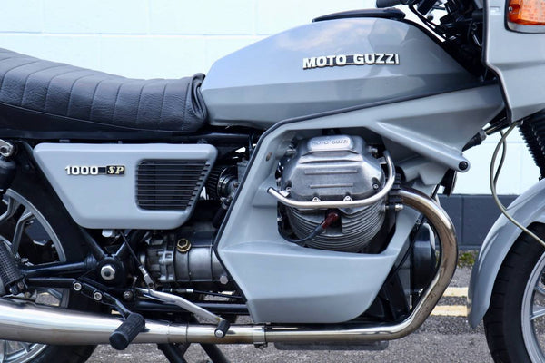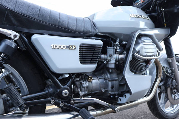 1980 Moto Guzzi 1000SP Spada (SP1). In fantastische staat hebben onlangs een gevoerde tank en opnieuw schilderachtig Pale Gray gehad. Nieuwe (originele stijl) batterij een paar maanden geleden. Begint gemakkelijk op de knop; Elektronische ontsteking. Olie strak. Recente carter schoon en filter, olieverversing. 36k mijl (geloofde waar maar diverse papierwerk alleen terug naar 2000, dus kilometerstand kan niet worden gegarandeerd. Lijkt origineel, hoewel Forks misschien niet is (alleen van het uiterlijk). Magwielen zijn opnieuw geselecteerd. Runs en rijdt heel goed met een frisse mot. Een uitstekend voorbeeld is klaar om te genieten!
