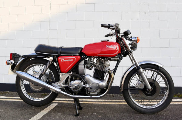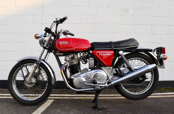 1973 Norton Commando MK2 850 Roadster. In geweldige staat met bijpassende nummers, originele Dunlop -velgen, elektronische ontsteking en regulator/gelijkrichter, nieuwe brandstoftank en zijpanelen, kilometerteller met 7800 mijl, niet geverifieerd, framepoeder gecoat, nieuw; Uituitjes, middenstandaard, standaard zuigerringen, koppakking, oliafdichtingen, luchtfilter, koplamp, pluggen, olie en filter, batterij, voorband, buizen. Cilinderkopbouten vereisen herhaling van 50, 250 mijl. Al met al een uitstekende machine.