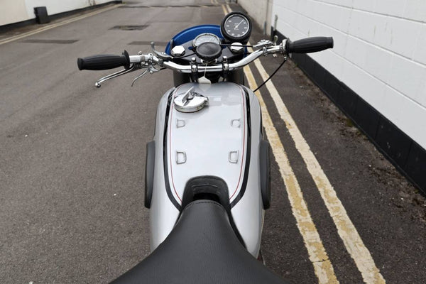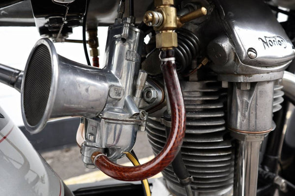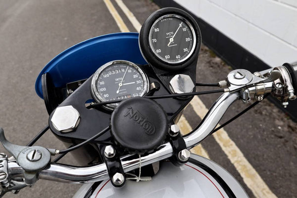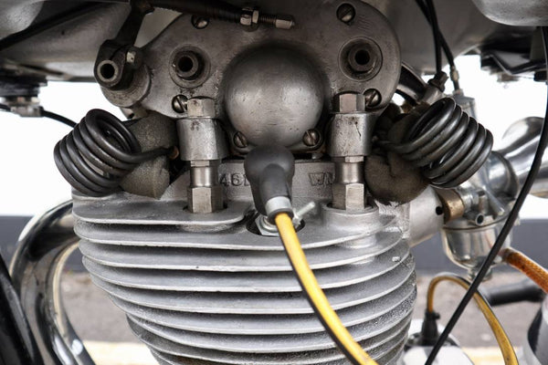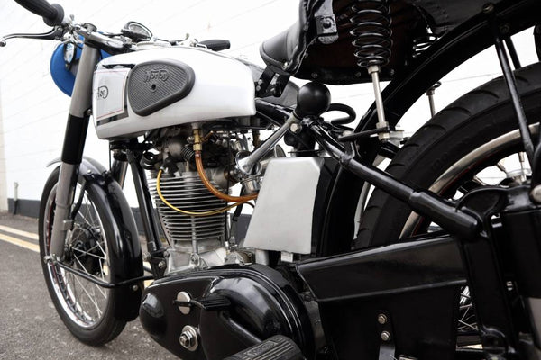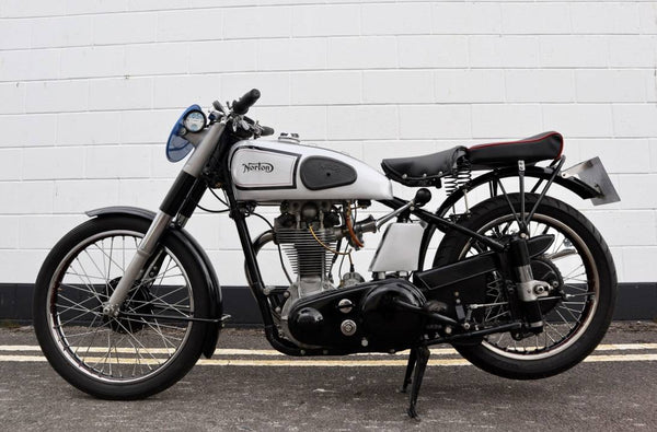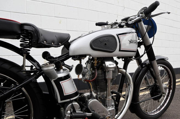 Ex isle of Man 1949 Norton International Clubmans TT Model 40 350cc plunjer. Met bijpassende motor- en framenummers, in uitstekende staat, zijn ze volledig hersteld door Mike Pemberton en George Cohen. De motor, het werd onlangs herbouwd door de eerder genoemde George Cohen en heeft sinds de herbouw minder dan 50 mijl bedekt, deze wegtest was een verkenning van de behandeling in plaats van regelrechte snelheid.
