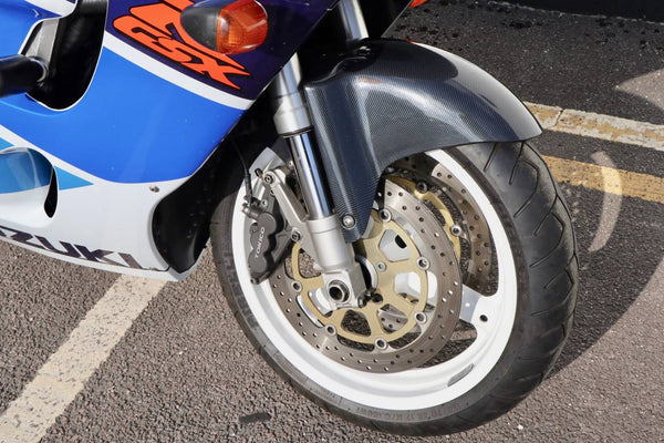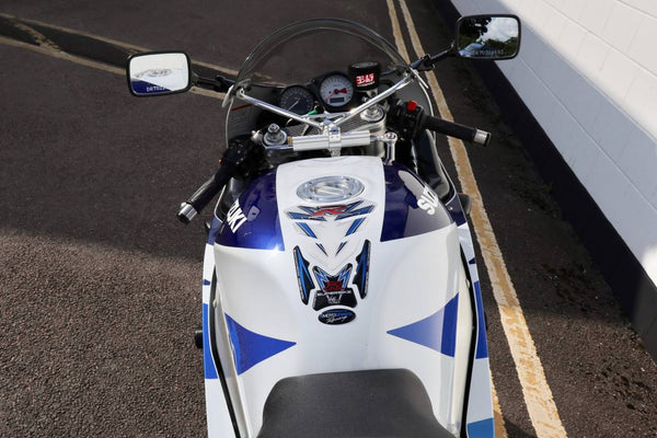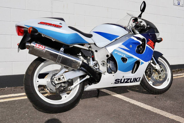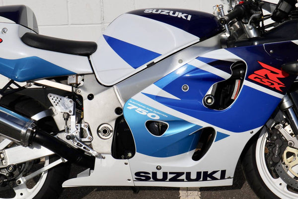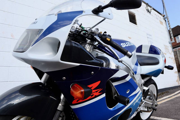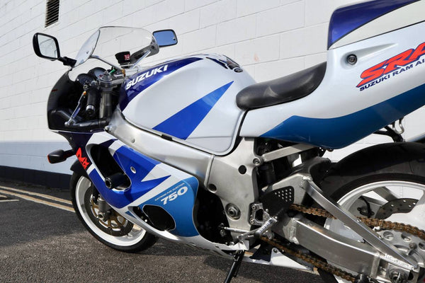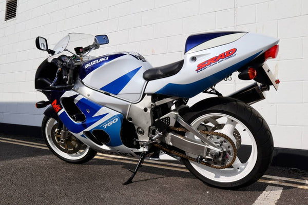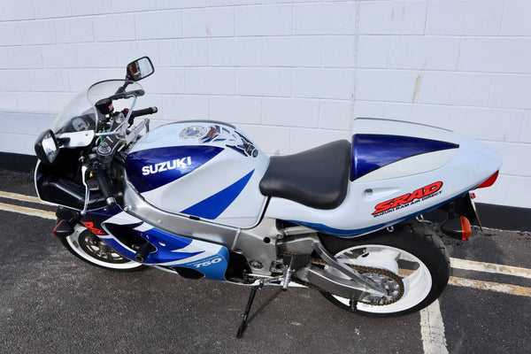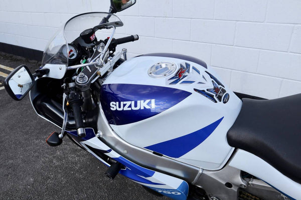 1998 Suzuki GSXR 750. In zeer goede staat voor zijn leeftijd zoals te zien op de foto's. Diende en Mot'd onlangs. 26736 mijl op de klok. Het heeft een aantal mooie upgrades Ohlins Damper, Harris Fairing Mount en Achter sets plus een nieuwe nitron -achterschok.