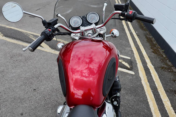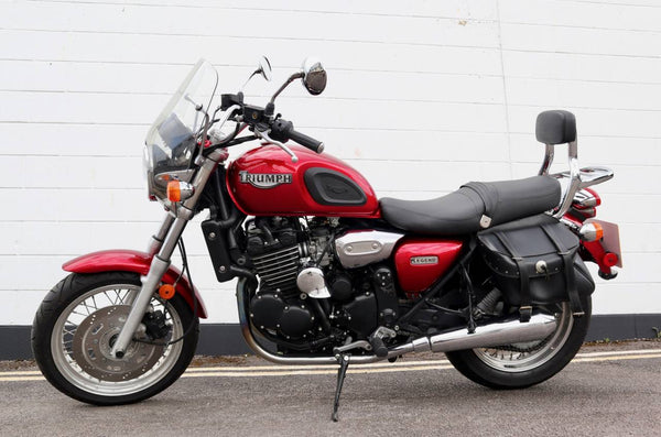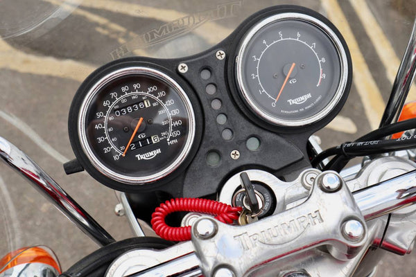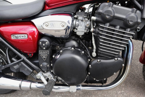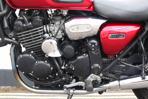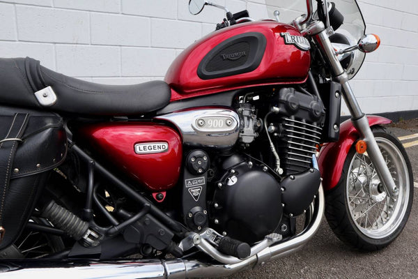 1999 Triumph Legend 900cc. In uitstekende staat met slechts 3836 mijl op de klok van nieuw. De laatste huidige eigenaar kocht de Triumph in California USA van de oorspronkelijke eigenaar met 500 mijl op de klok. De fiets werd in 2012 teruggestuurd naar het VK. Wordt geleverd met veel papierwerk. Service, registratiedocumenten gedurende vele jaren in CA -verzenddocumenten, certificaat van Triumph om de bouwdatum te certificeren enz. Een zeldzaam voorbeeld met een laag milage!