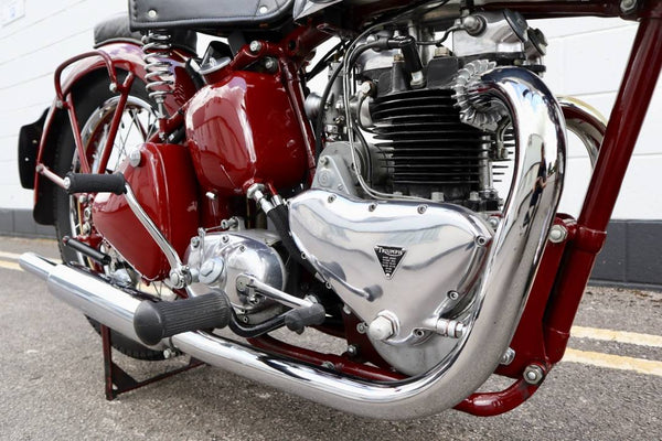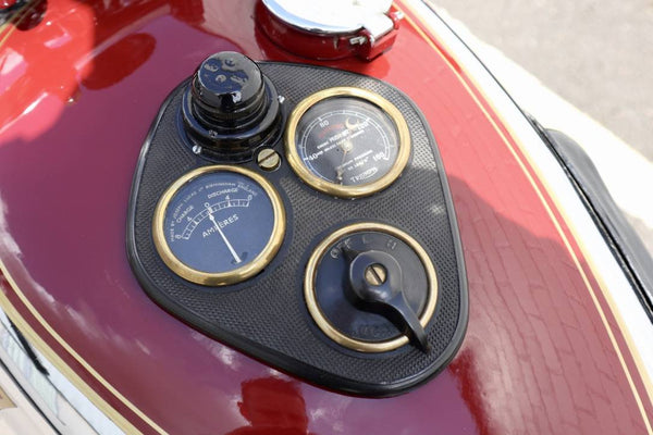 1938 Triumph Pre-War 5t Speed Twin 500cc. In uitstekende staat op zoek naar een oudere restauratie. Begint gemakkelijk en loopt ook en rijdt erg goed, zoals te zien in de video. De 5T heeft het grootste deel van zijn leven in Duitsland gewoond, waar het werd onderworpen aan een volledige motorwederopbouw van ongeveer 1000 km geleden door een lokale ingenieur uitgerust met een nieuw gereconditioneerde KM Speedo, we hebben indien nodig een milage per uur. Een zeldzame kans om een goed gesorteerd voorbeeld te kopen!