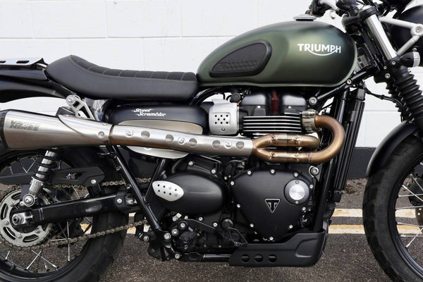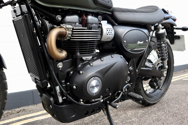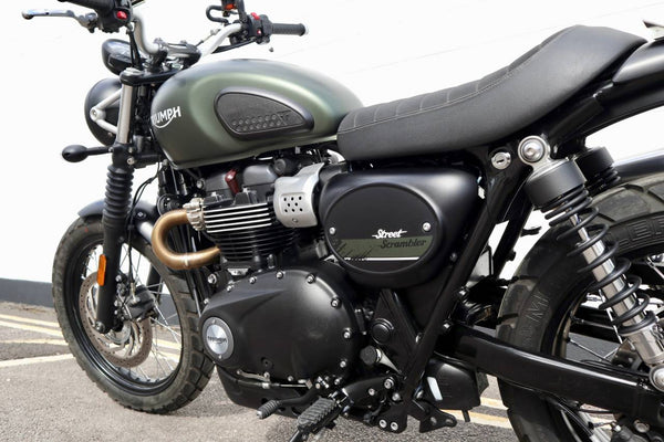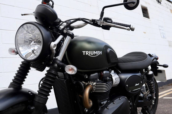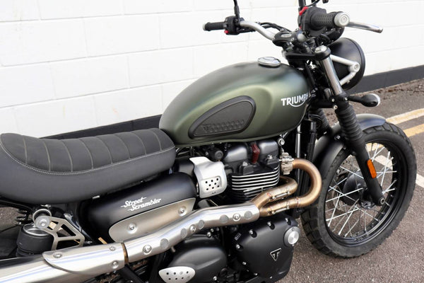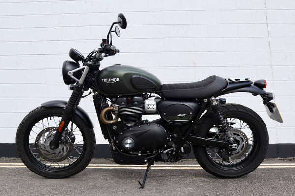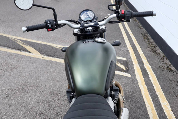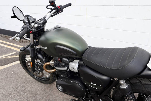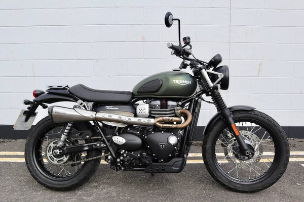 2018 Triumph Street Scrambler 900cc. In uitstekende staat met slechts 3653 mijl op de klok. Klinkt fantastisch met het uitlaatsysteem van Vance & Hines en ziet er ook fantastisch uit met de Matt Green Paint. Mot'd tot 25.03.2022 en services zijn up -to -date. Een geweldig uitziende fiets en ook heel leuk!