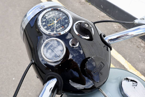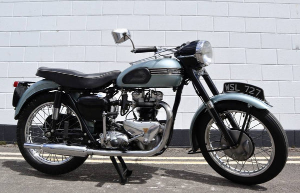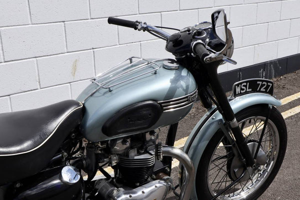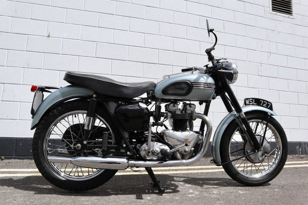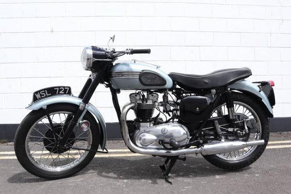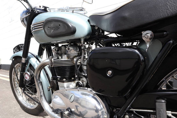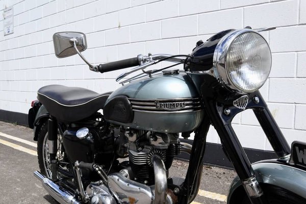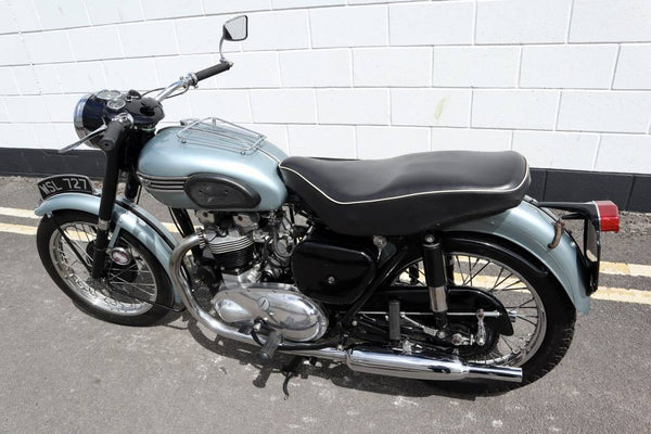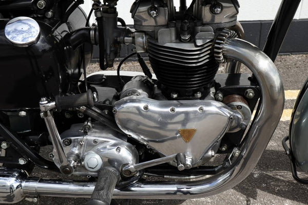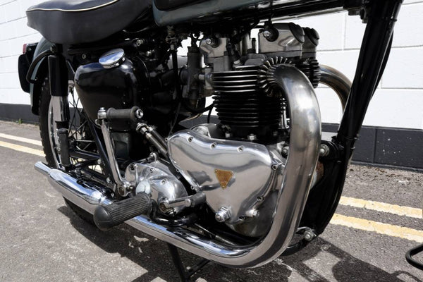 1956 Triumph T110 650cc. Een oudere restauratie in mooie bruikbare staat met bijpassende motor- en framenummers. Deze T110 maakte deel uit van een grote verzameling motorfietsen. Begint gemakkelijk en loopt geweldig met een frisse motor. Een motorfiets die ideaal kan zijn voor lokale clubruns en VMCC -evenementen. Het wordt compleet geleverd met een huidige V5C en een Triumph -handleiding. T110‚äôs worden zeer gewild en moeilijk te vinden, dus wees hier snel op!