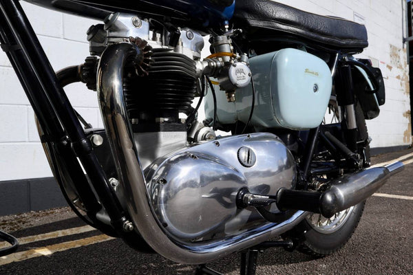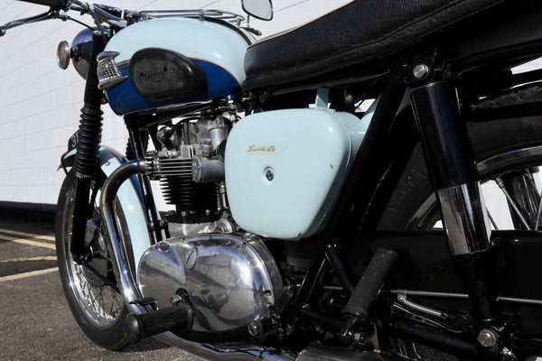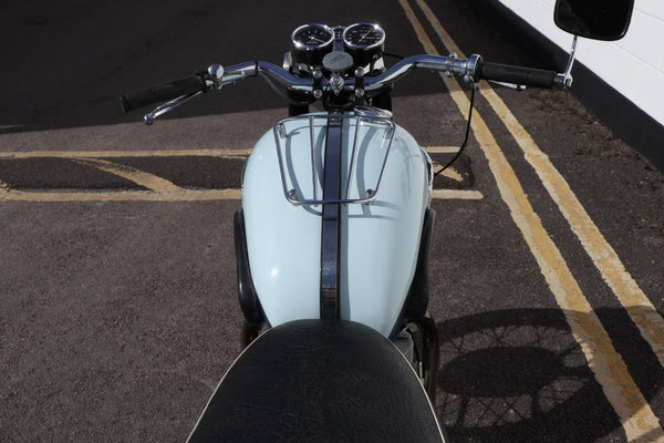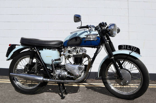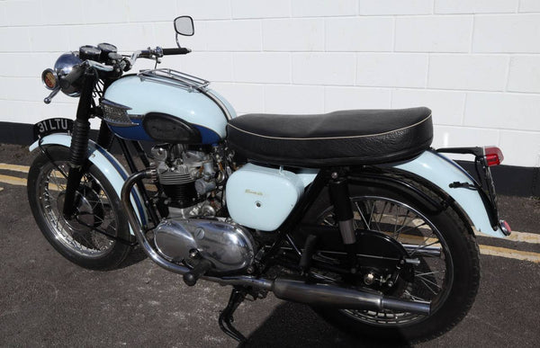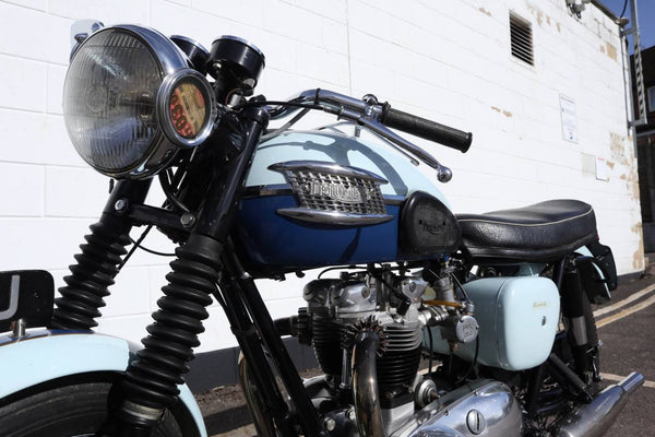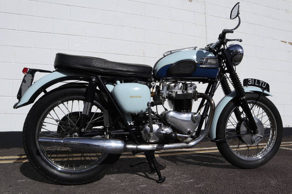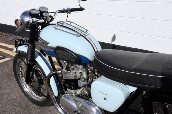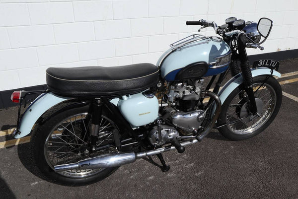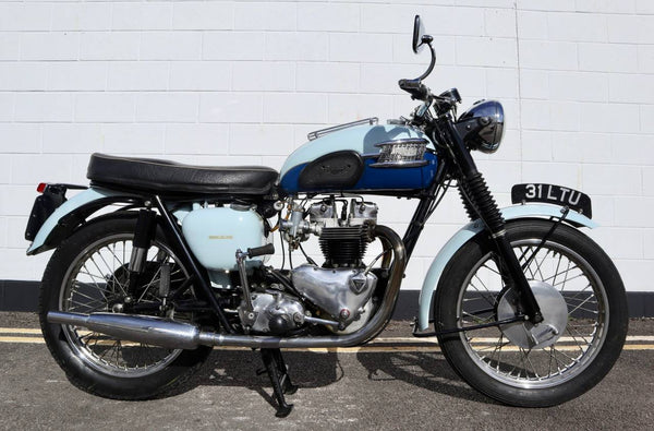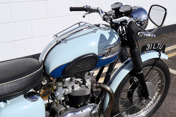 1960 Triumph T120 Pre - Unit Bonneville. VK voorbeeld in mooie oudere restauratieconditie met bijpassende originele frame en motortoerental en het oorspronkelijke overdraagbare registratienummer (31 LTU). Ziet er fantastisch uit in de juiste kleuren voor een voorbeeld uit 1960 Pearl Gray en Royal Blue. Ziet er erg correct uit en naar originele specificatie plus de optionele extra rev -teller. Wordt geleverd met zijn originele groene kaartlogboek Huidige V5 C en bonnen en oude MOT's. Begint gemakkelijk en loopt en rijdt heel goed en moet worden ingediend als slechts 154 mijl, omdat de motor opnieuw werd opgebouwd. Een goed voorbeeld en een uitstekende investering.