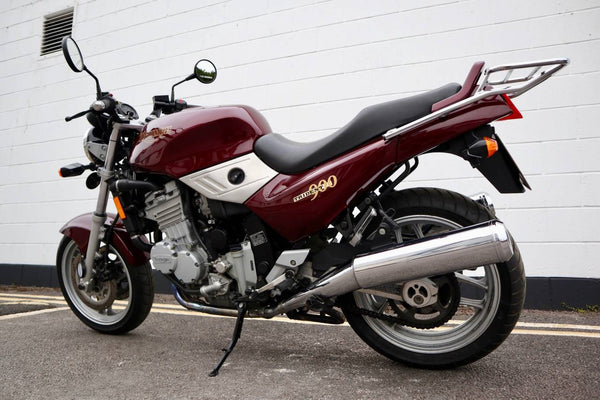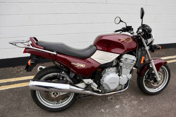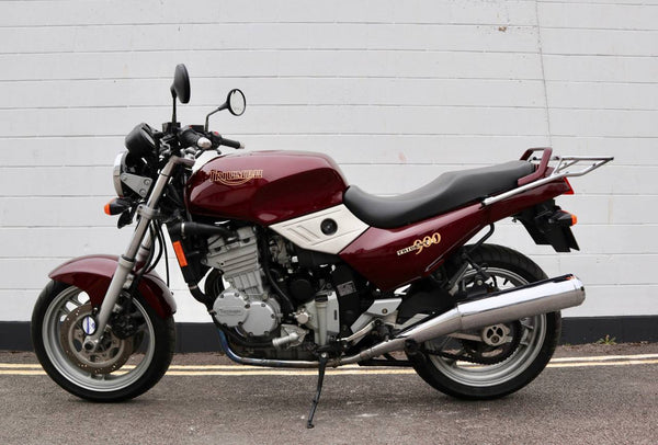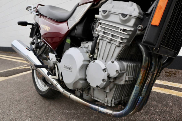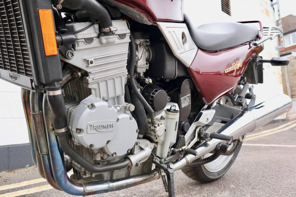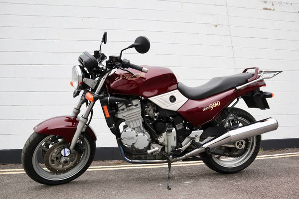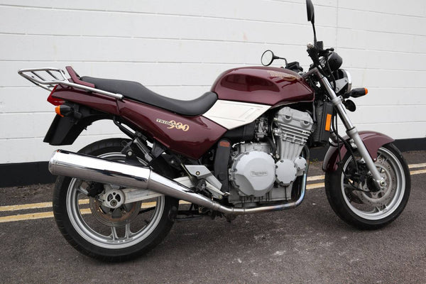 1993 Triumph Trident 900cc. In uitstekende staat met slechts 14890. Wordt geleverd met een goede geschiedenis die de milage bevestigt om correct te zijn. Begint runs en rijd heel goed met het mot dat duurt tot 7.3.2023. Een goed voorbeeld!