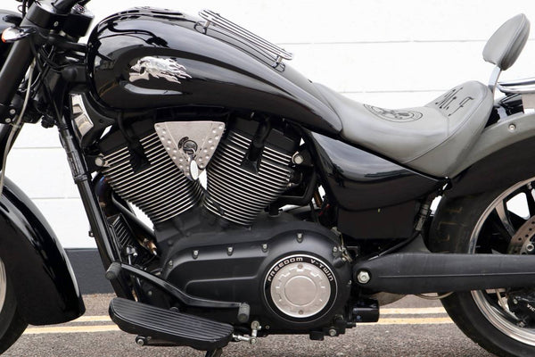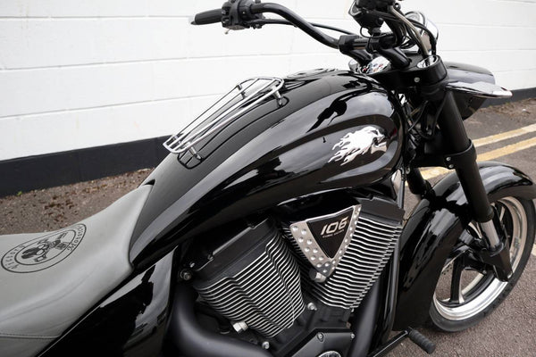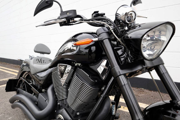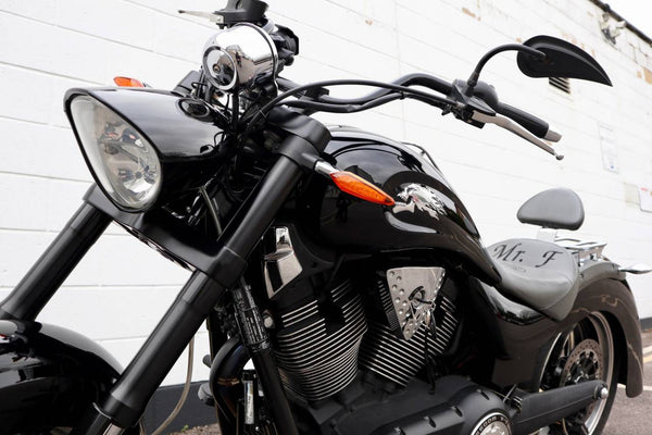 Victory Kingpin 106 1731cc 2012. Een geweldig uitziende machine in zwart met slechts 7538 mijl op de klok. Wordt geleverd met geschiedenis die bewijst dat de milage origineel is. Wordt geleverd met reserve modderbeschermers en andere stukjes. Zal een frisse mot te koop hebben. Er zijn een paar krassen die te zien zijn in de video, maar over alles in zeer goede volgorde. Koopje !