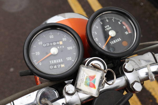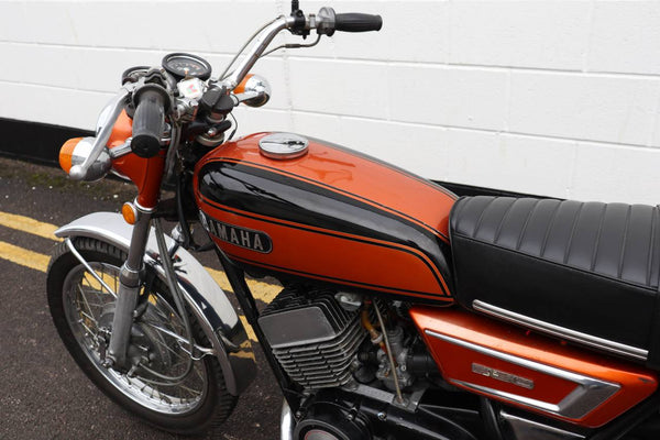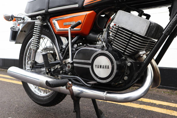 1972 Yamaha YR5 350cc. Met bijpassende motor- en framenummers, zeer originele staat zoals te zien op de foto's. Dit voorbeeld werd voor het eerst geregistreerd in het VK in 2019. Runs en ritten zoals het hoort. Dit is een bruikbaar voorbeeld met potentieel om waarde toe te voegen met een cosmetische renovatie. Een geweldige investering!