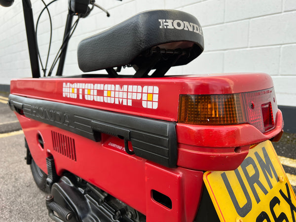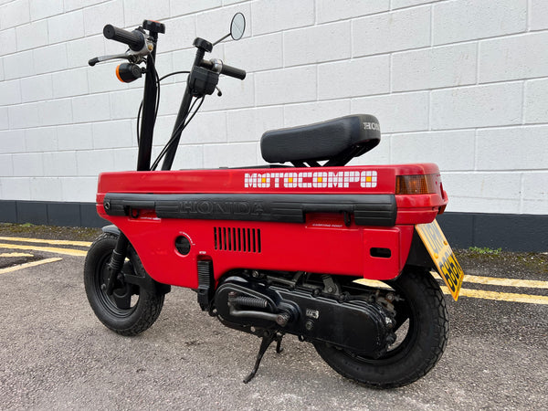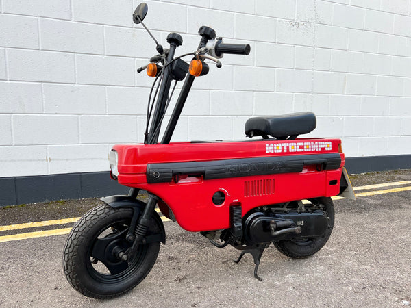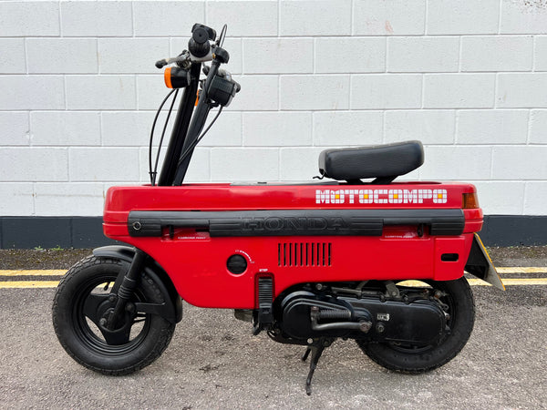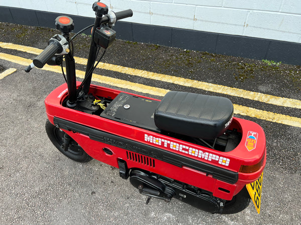 Honda NCZ50 Motocompo 49cc 1982. A rare Japanese Twist and go Trunk Bike. These collectable Honda Trunk bikes were only made for the Japanese market and are rarely seen for sale in the UK. This example looks to be in very good all original condition. Starts well and is road registered with a current log book. A great bit of fun and a good investment.